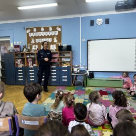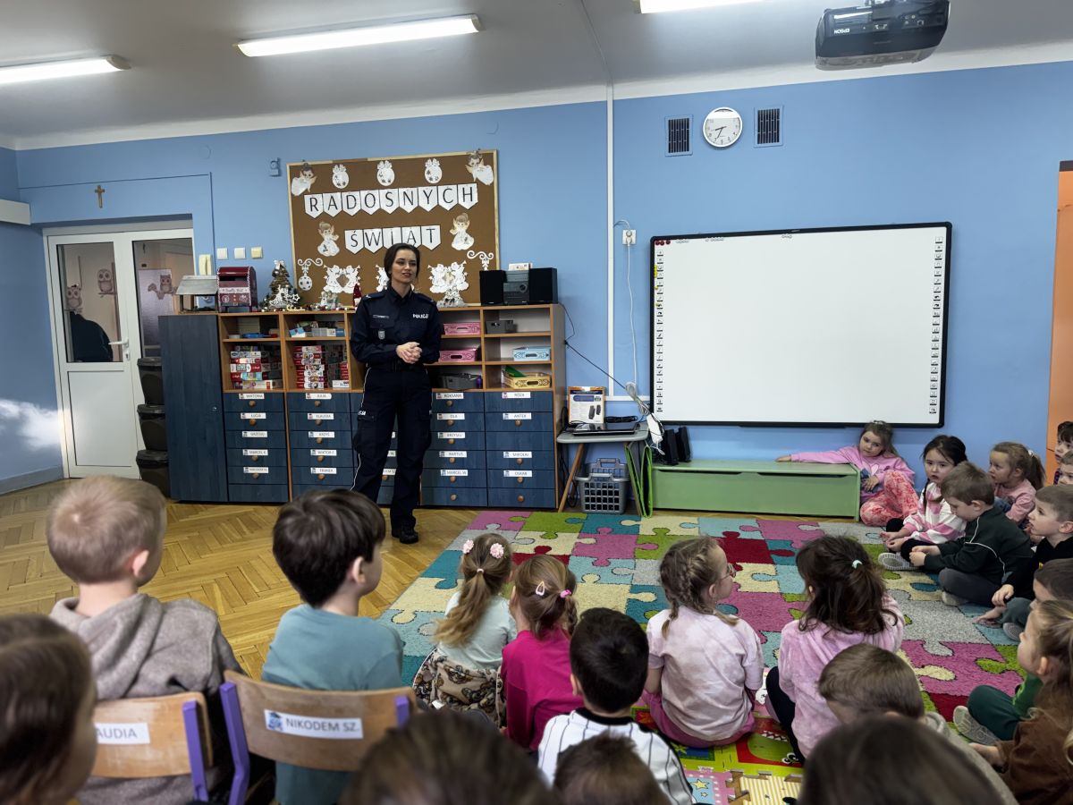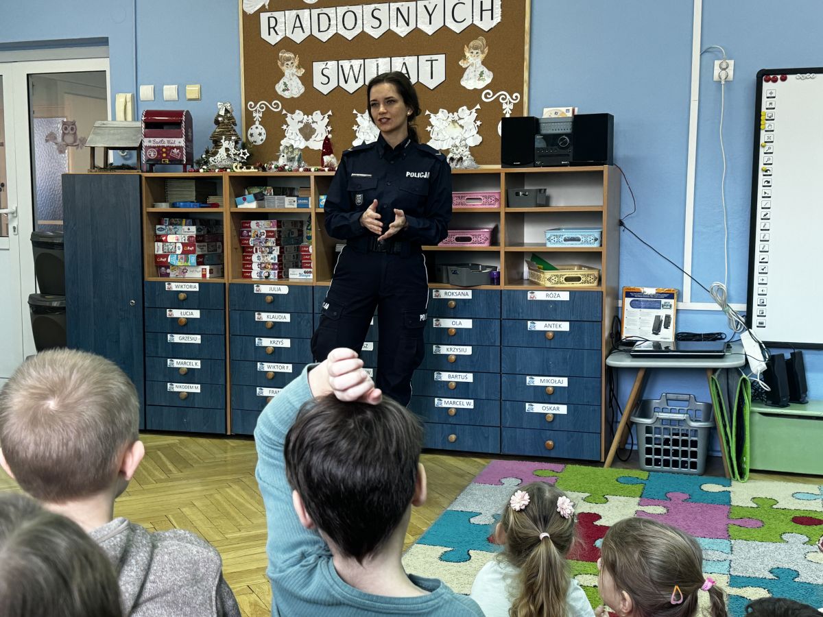 Bezpieczny przedszkolak podczas ferii- wizyta policjanta