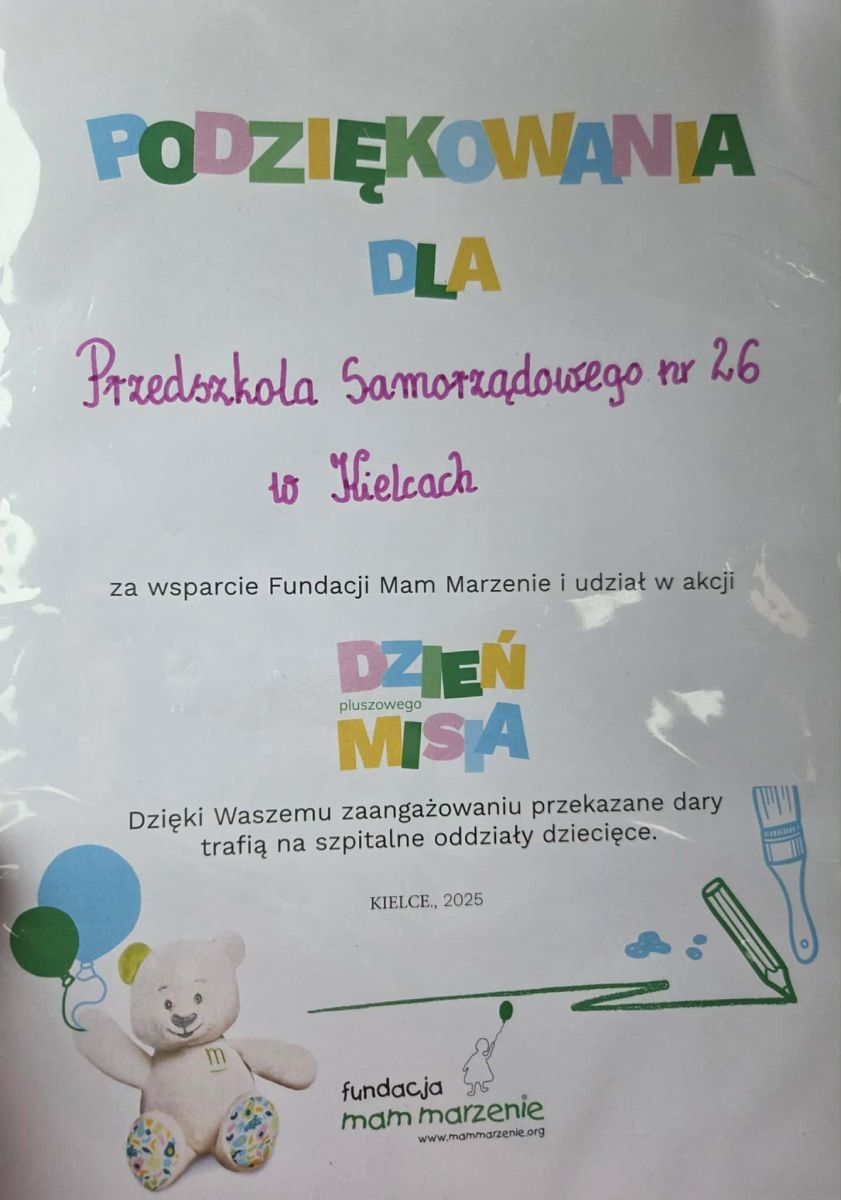 Podsumowanie akcji "Dzień Pluszowego Misia" Fundacji Mam Marzenie oraz spotkanie z wolontariuszką