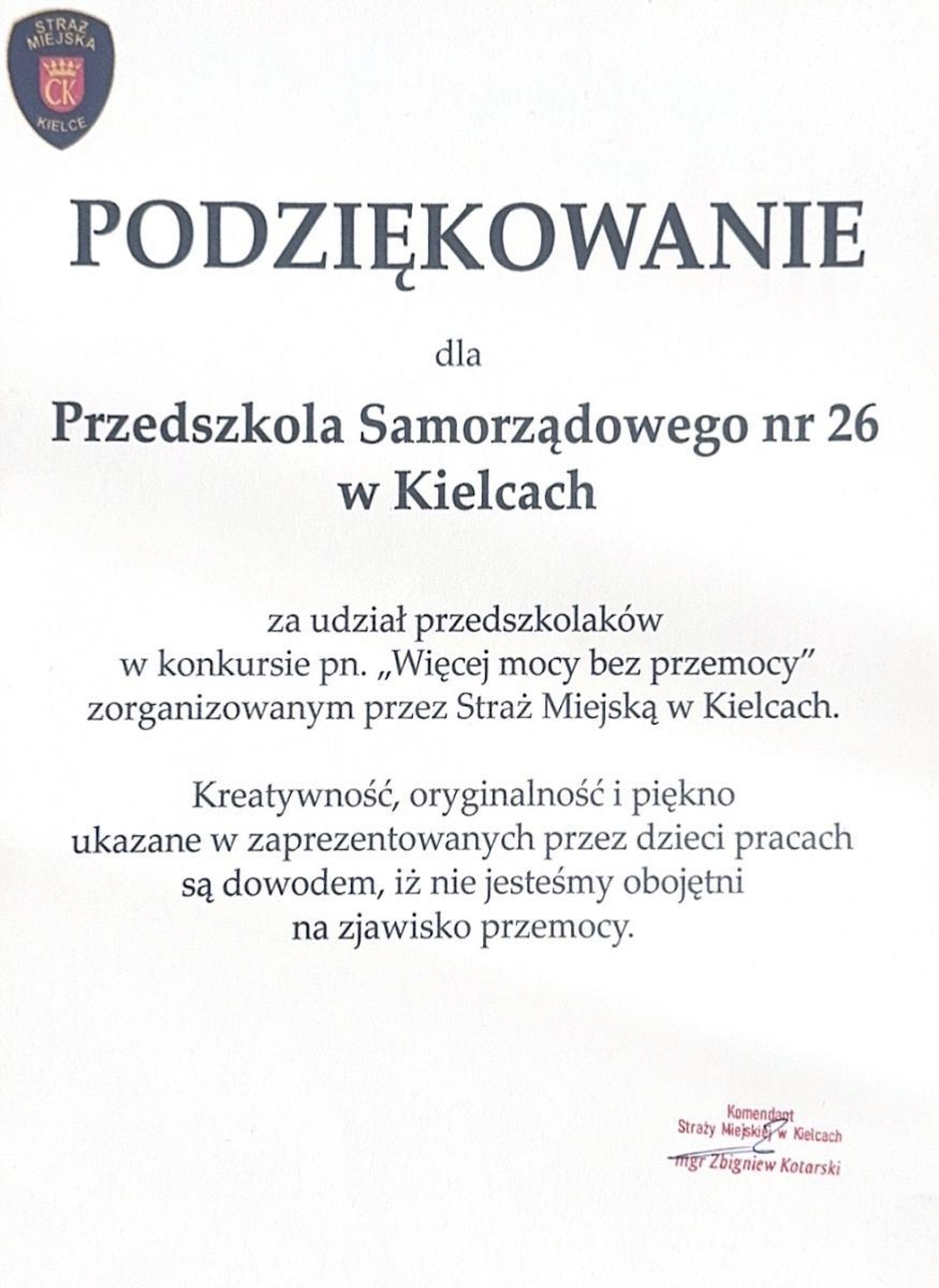 Konkurs “Więcej mocy bez przemocy” organizowany przez Straż Miejską w Kielcach