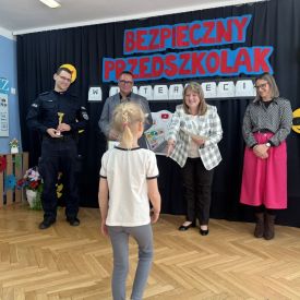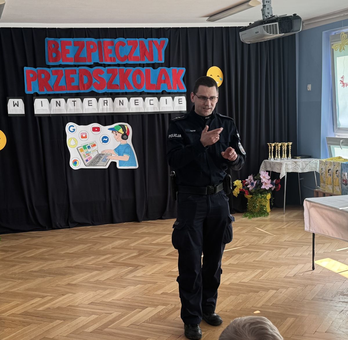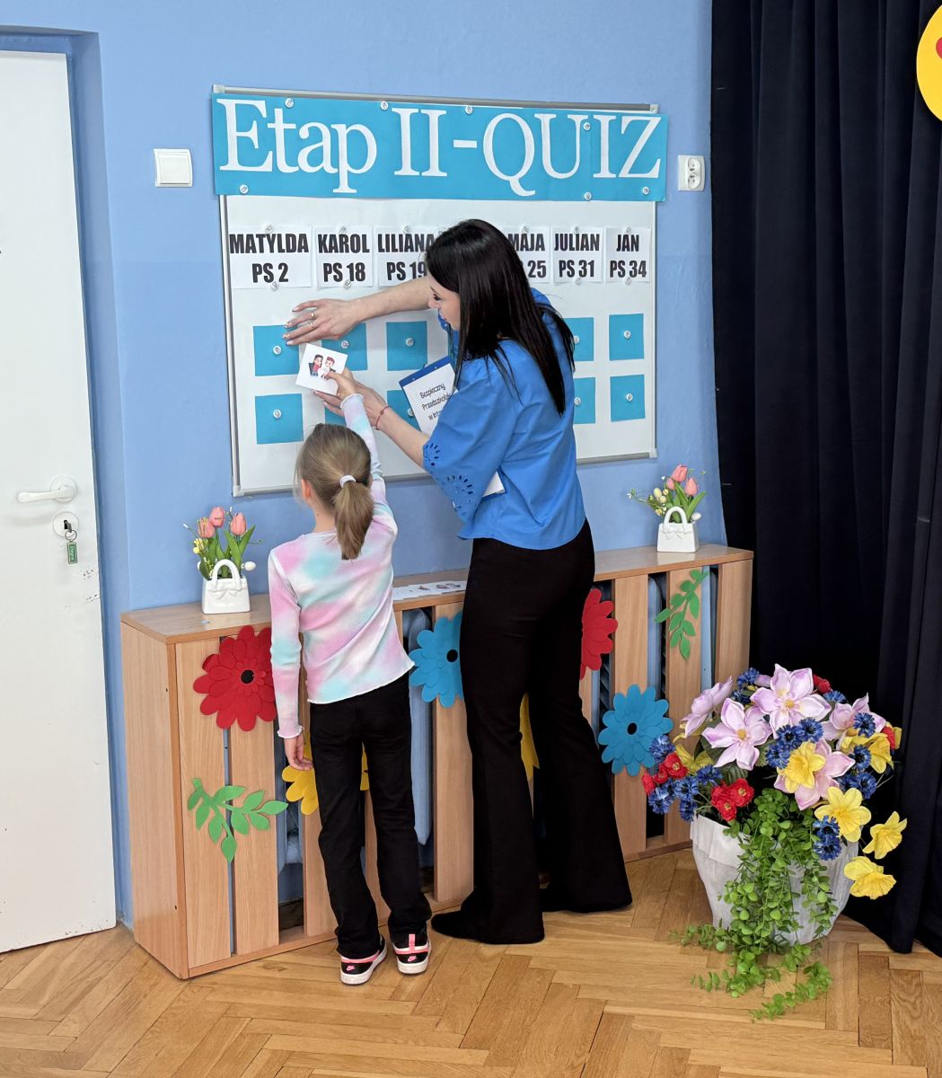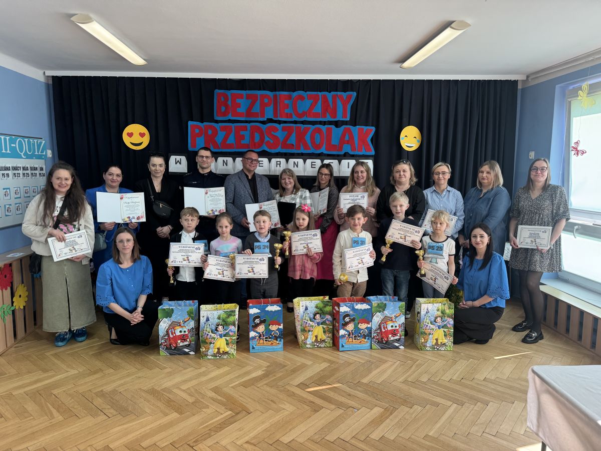 Podczas spotkania uczestnicy wzięli udział w quizie dotyczącym bezpieczeństwa w internecie, odpowiadając na pytania związane z właściwym i bezpiecznym korzystaniem z sieci. O bezpieczeństwie w internecie opowiedział również pan aspirant Łukasz Kubicki, który w przystępny sposób przybliżył dzieciom najważniejsze zasady poruszania się w świecie cyfrowym.