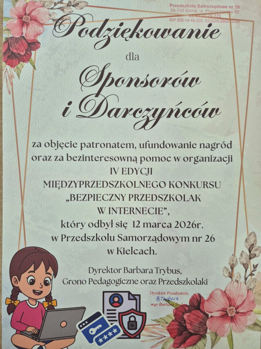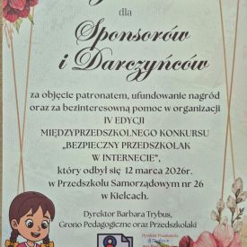 Podziękowanie dla Sponsorów w zorganizowaniu Konkursu